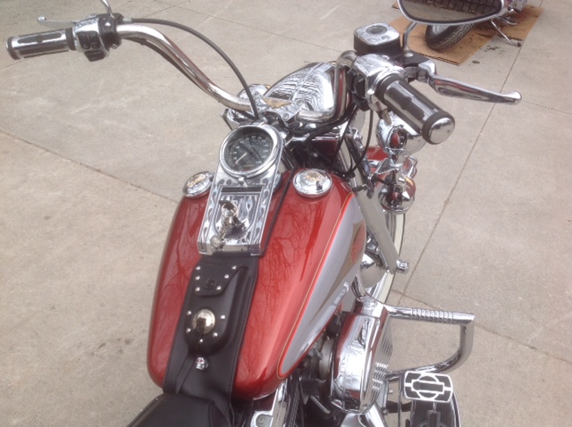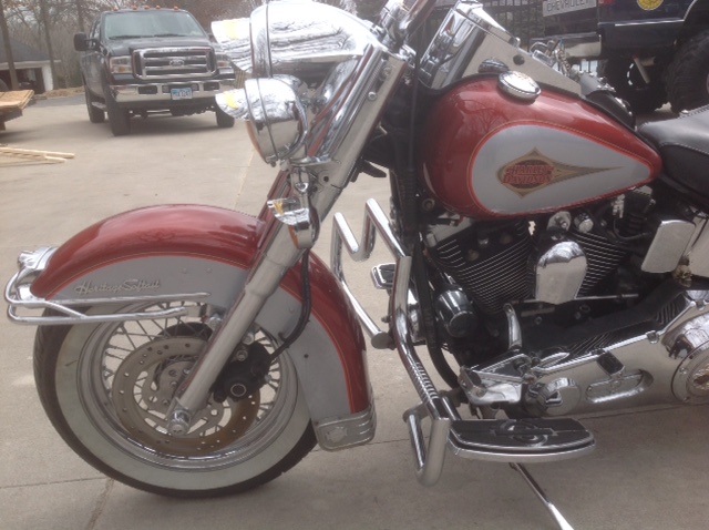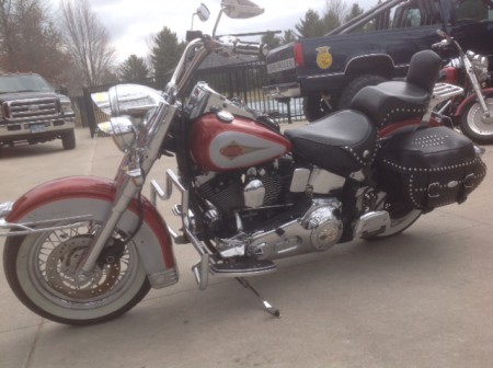 Harley Davidson 1340 Softail Héritage équipé de pots Vance&Hines,d'un carburateur HSR Mikuni et d'un filtre à air Kuryakyn.La peinture,les chromes,les alus,tout est en très bon état.Véhicule disponible Fin avril,vendu révisé.Réservation et livraison effectuée par nos soins possible.