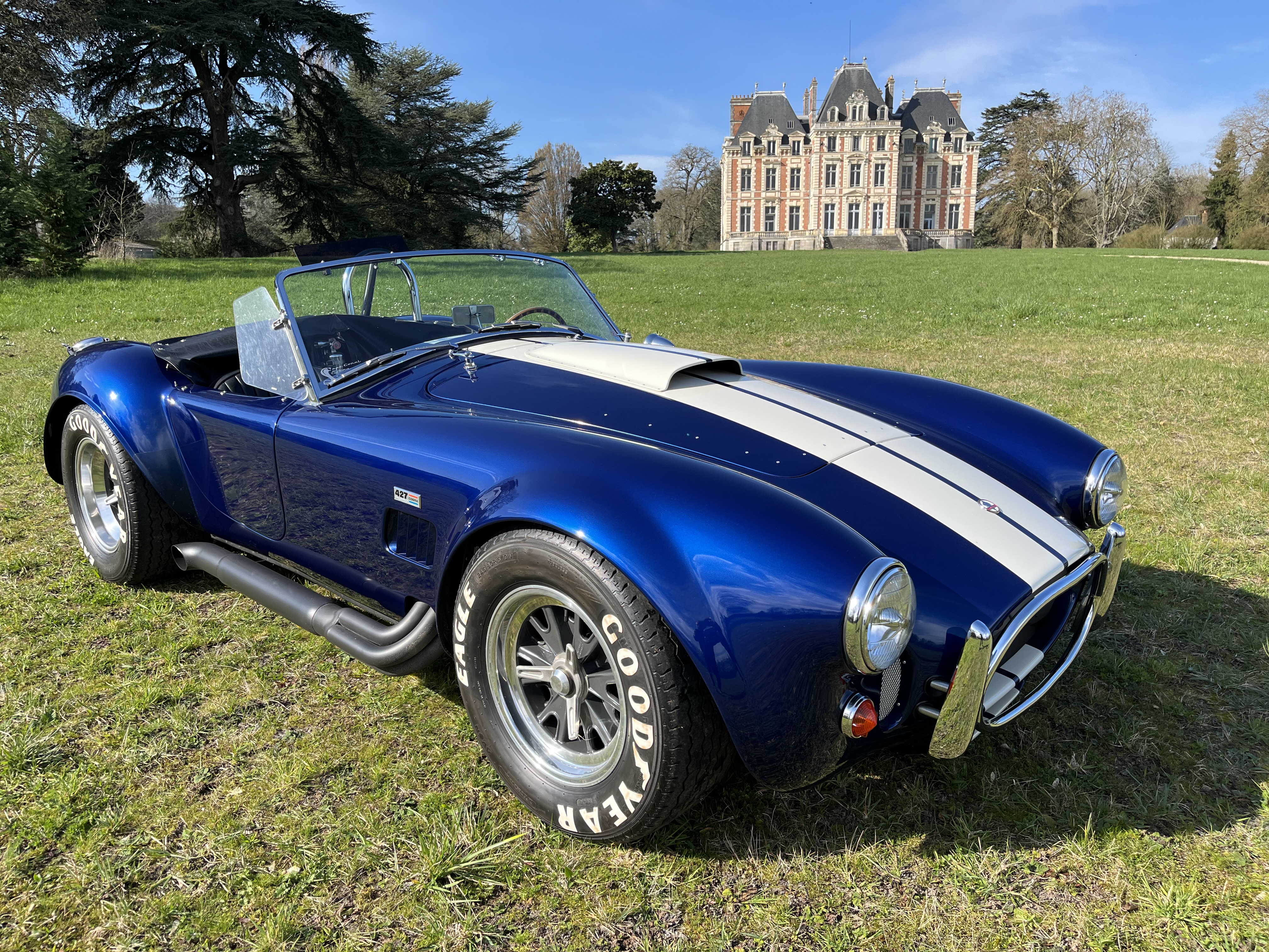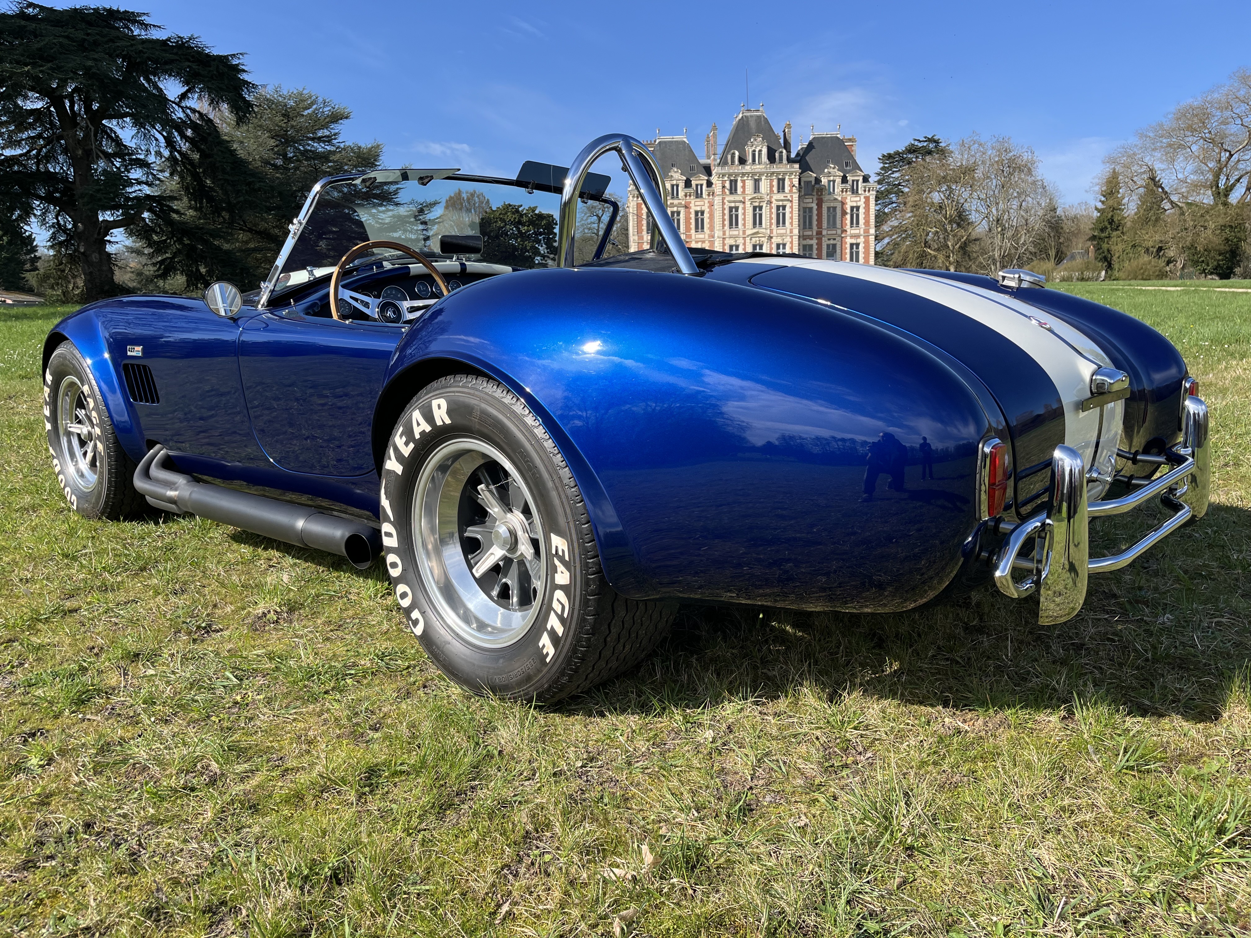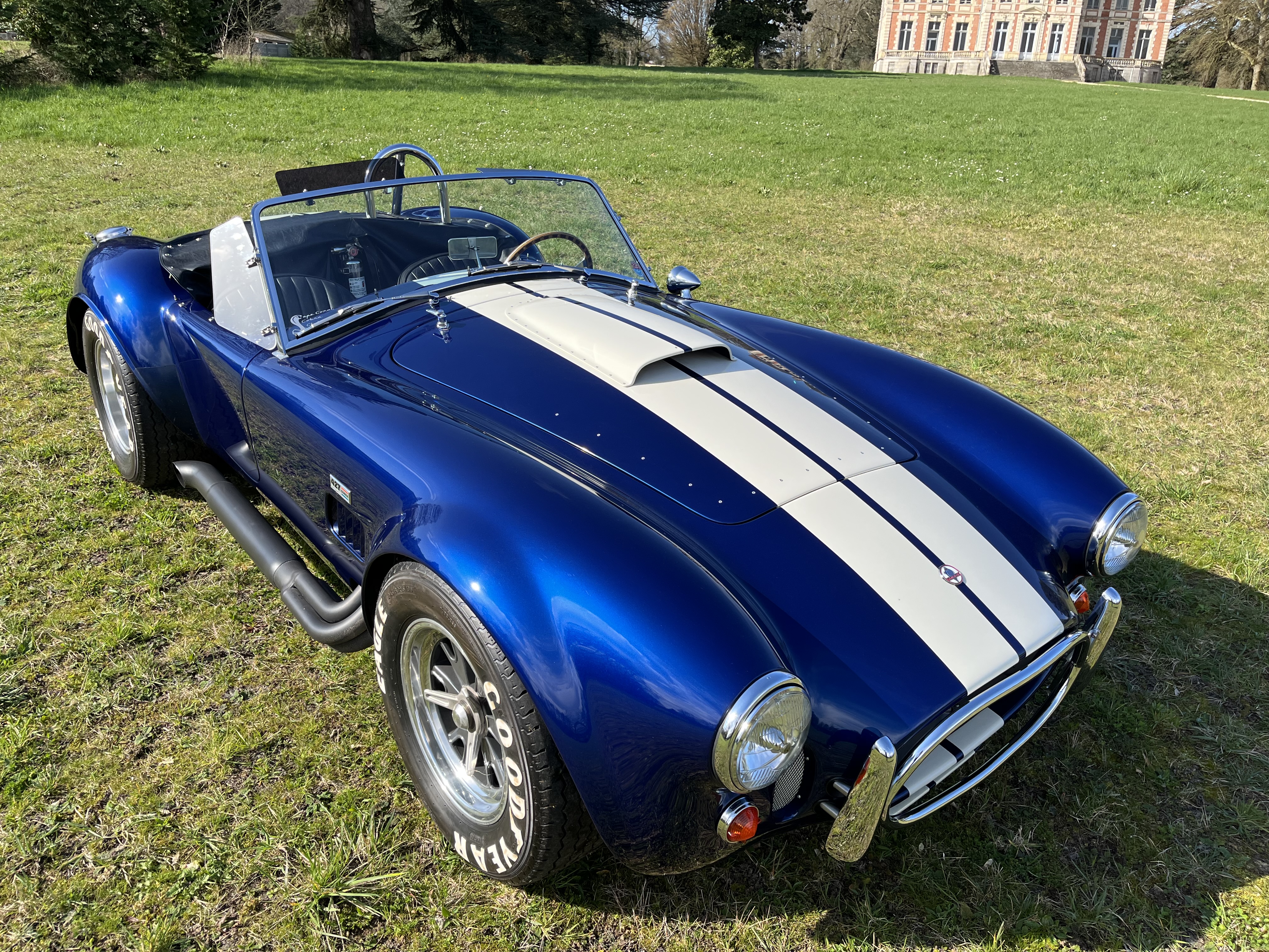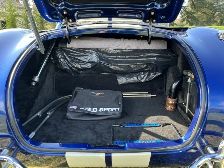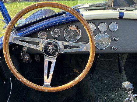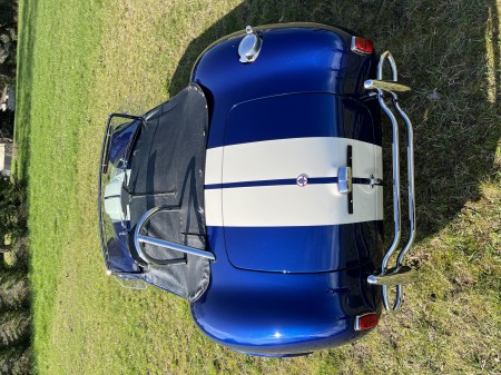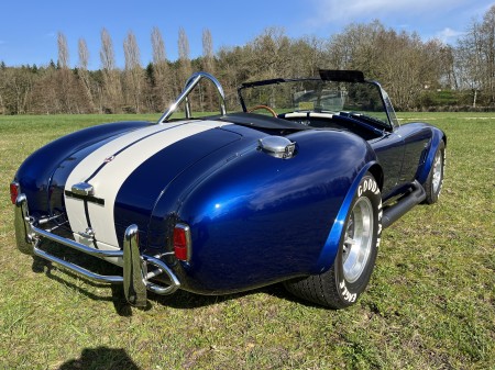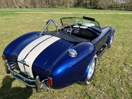 AC COBRA 427SC,réplique du célèbre constructeur ERA,très fidèle à l authentique auto réalisée par Carol Shelby dans ses proportions et design,l auto est équipée du big bloc 427 cubic inches soit 7litres de cylindrée et de la boîte 4 vitesses “top loader”.