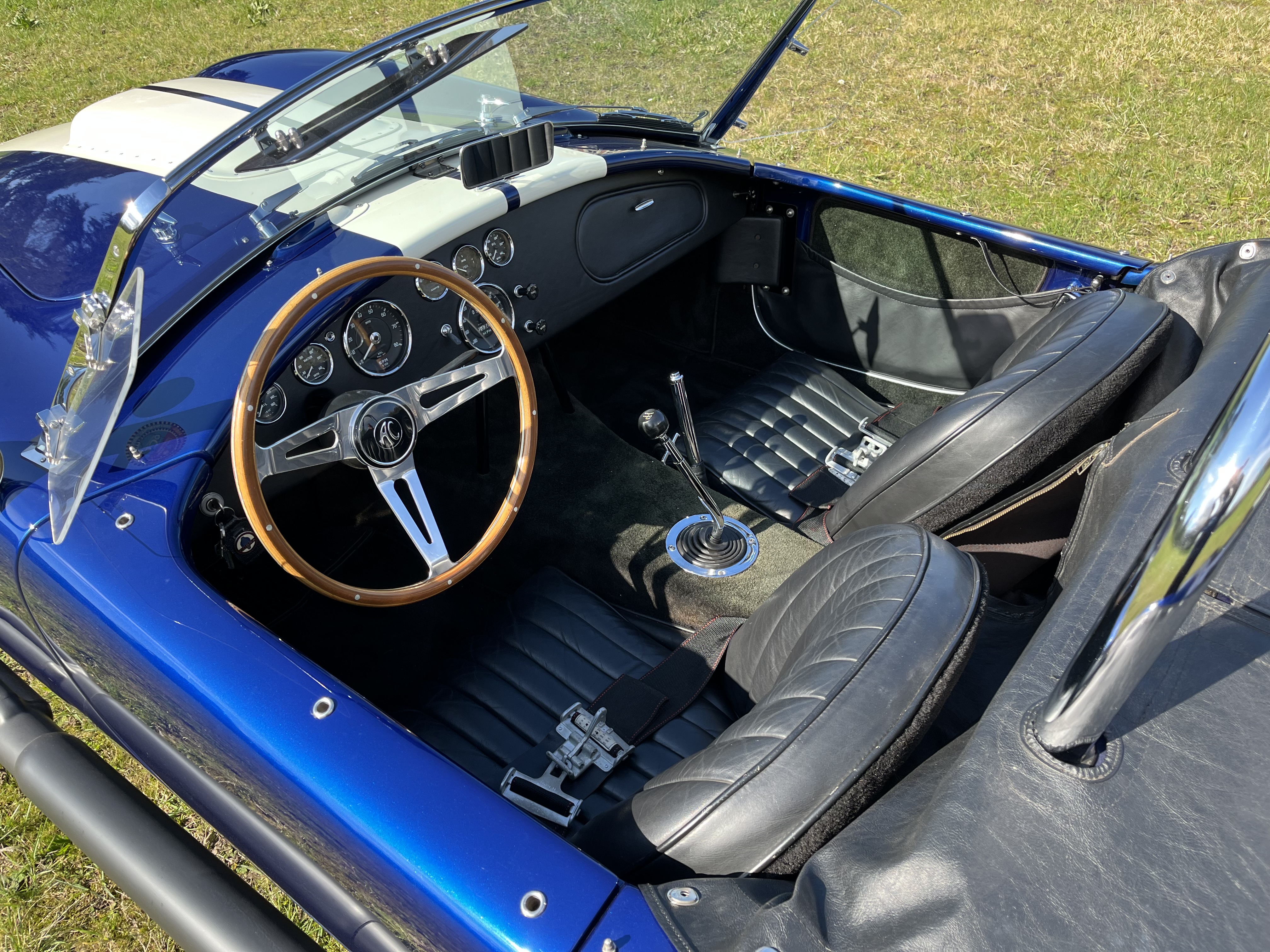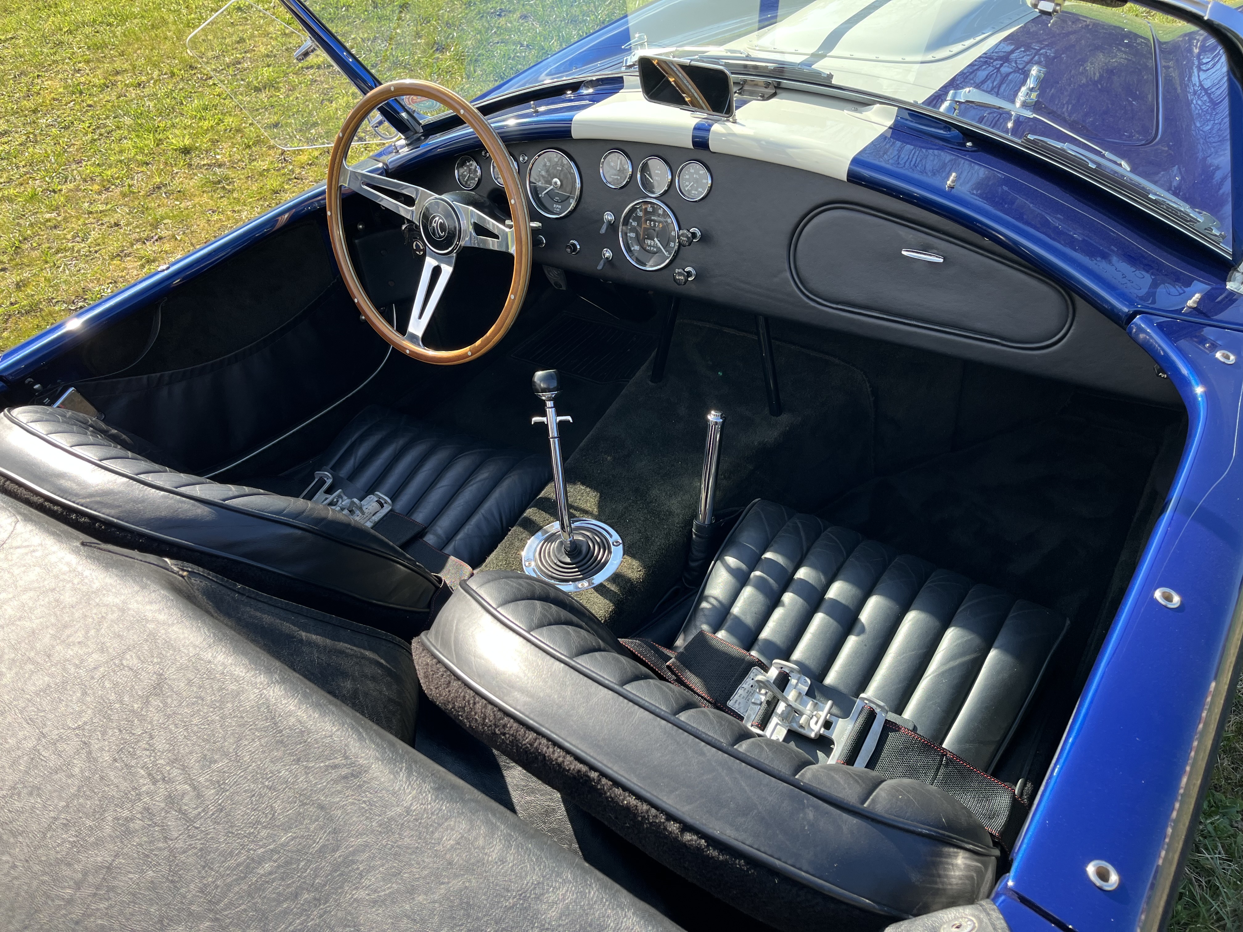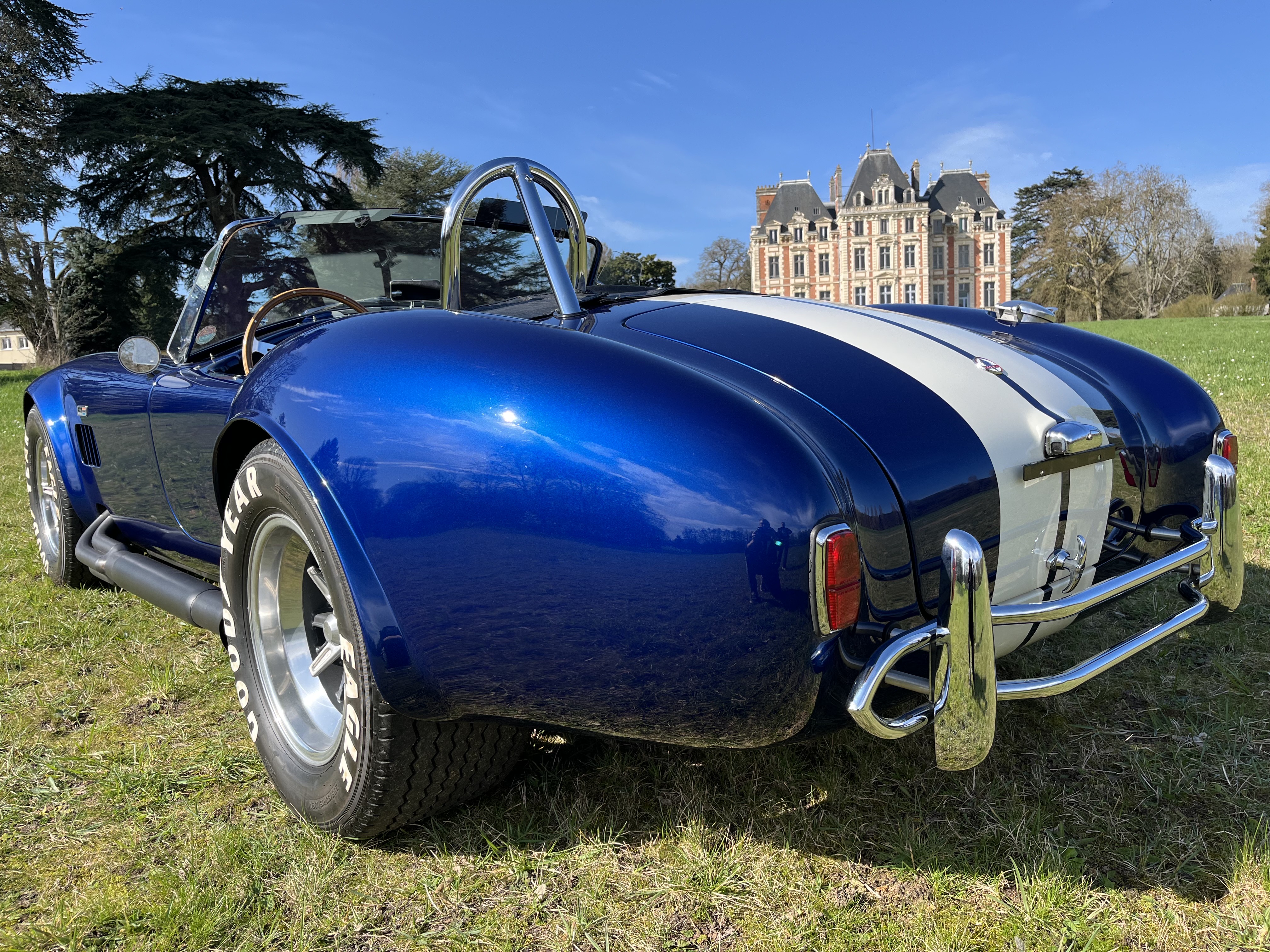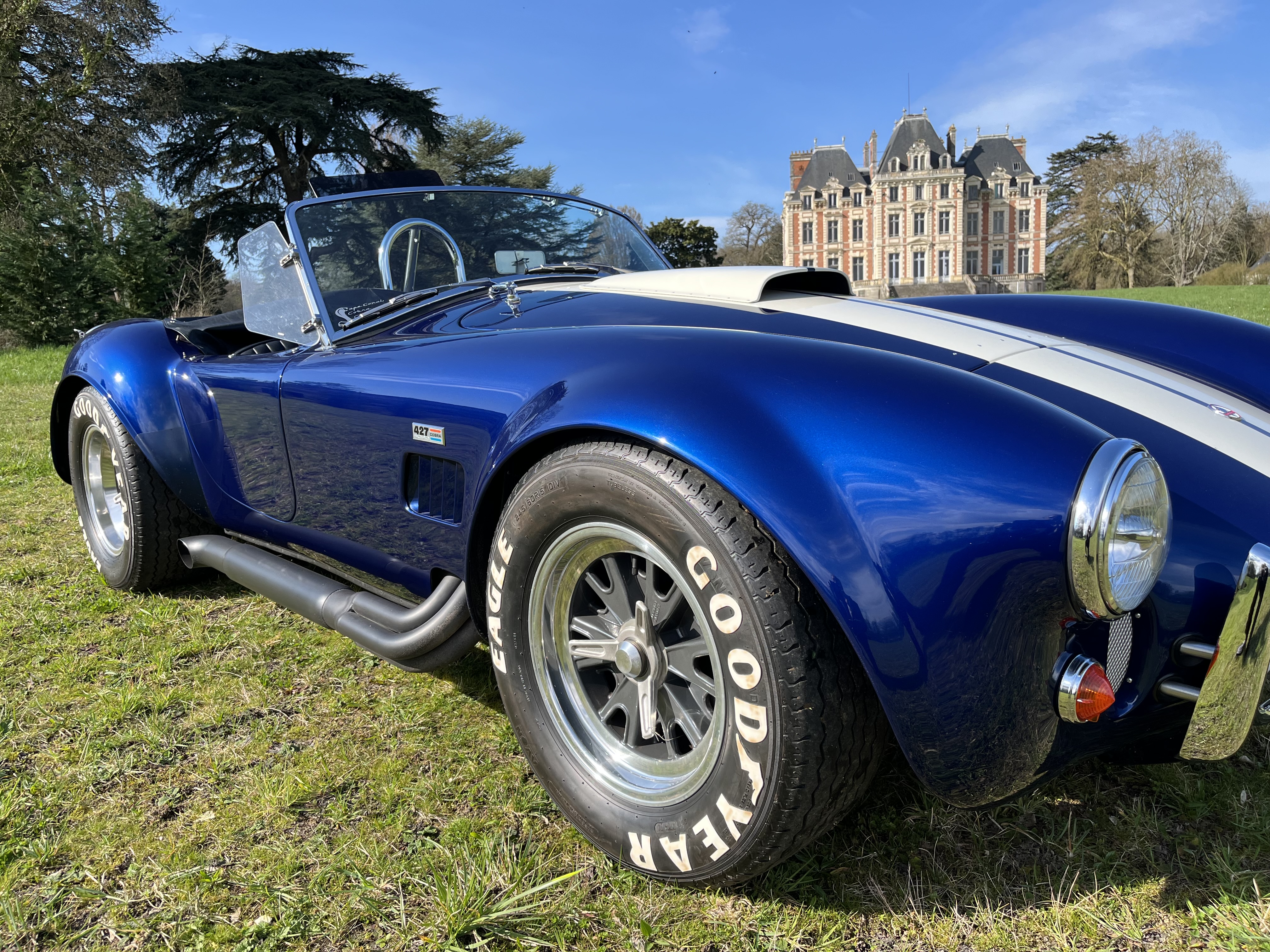 AC COBRA 427SC,réplique du célèbre constructeur ERA,très fidèle à l authentique auto réalisée par Carol Shelby dans ses proportions et design,l auto est équipée du big bloc 427 cubic inches soit 7litres de cylindrée et de la boîte 4 vitesses “top loader”.