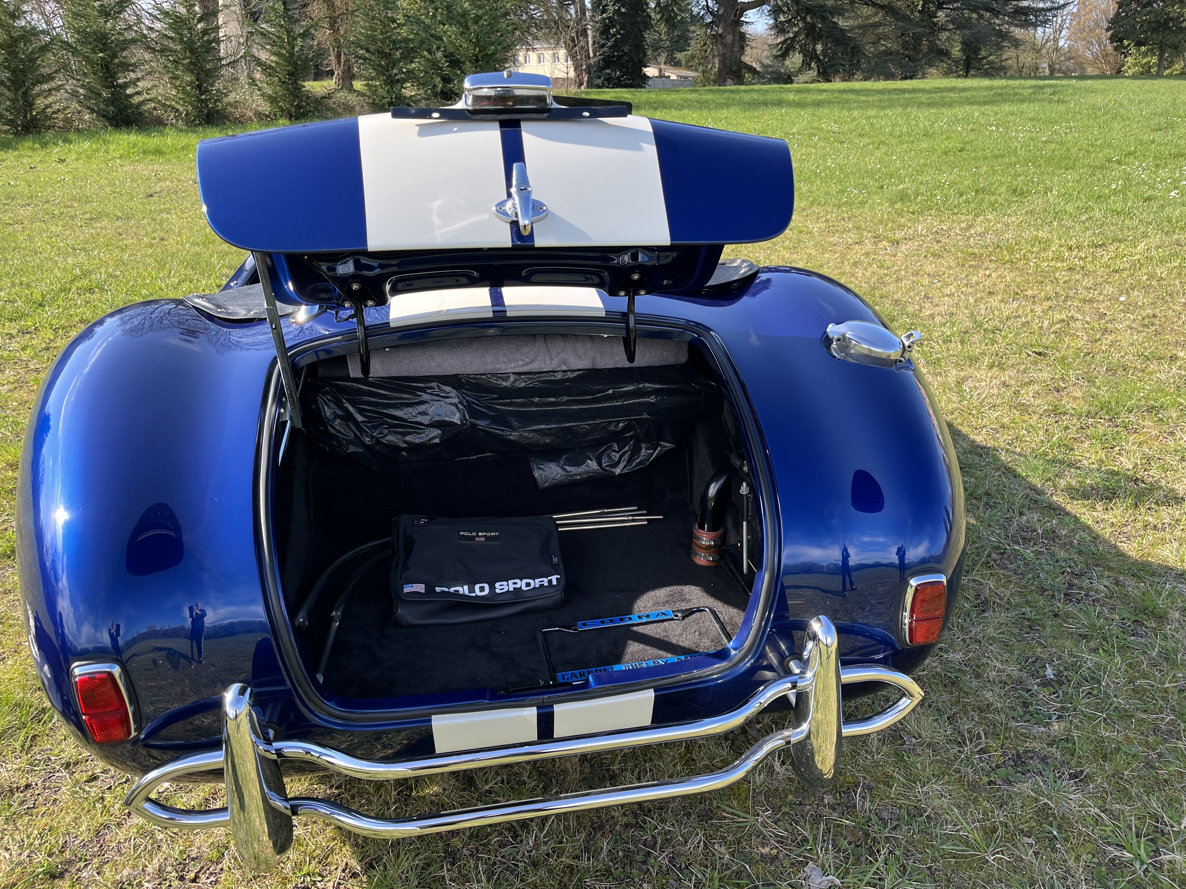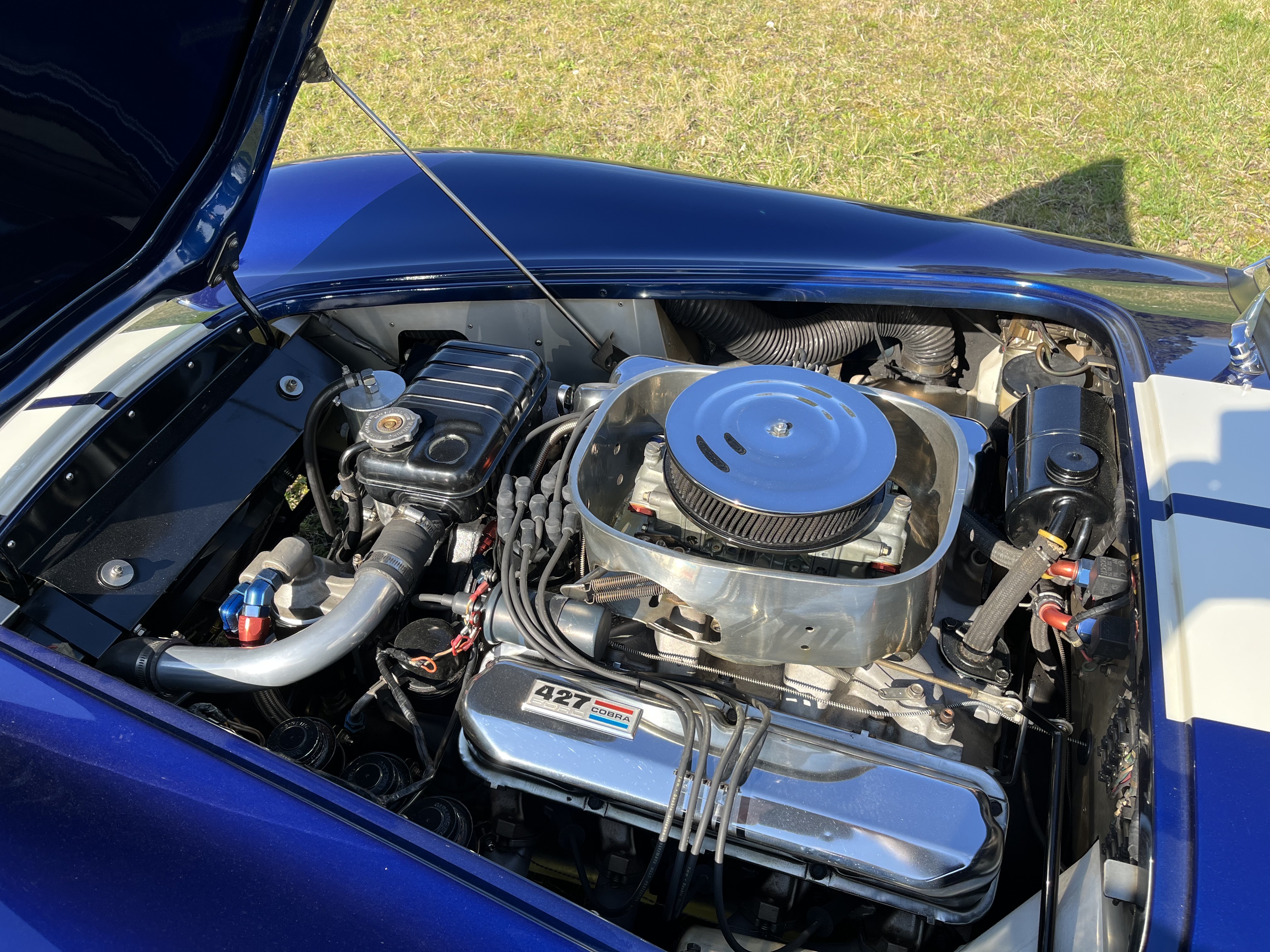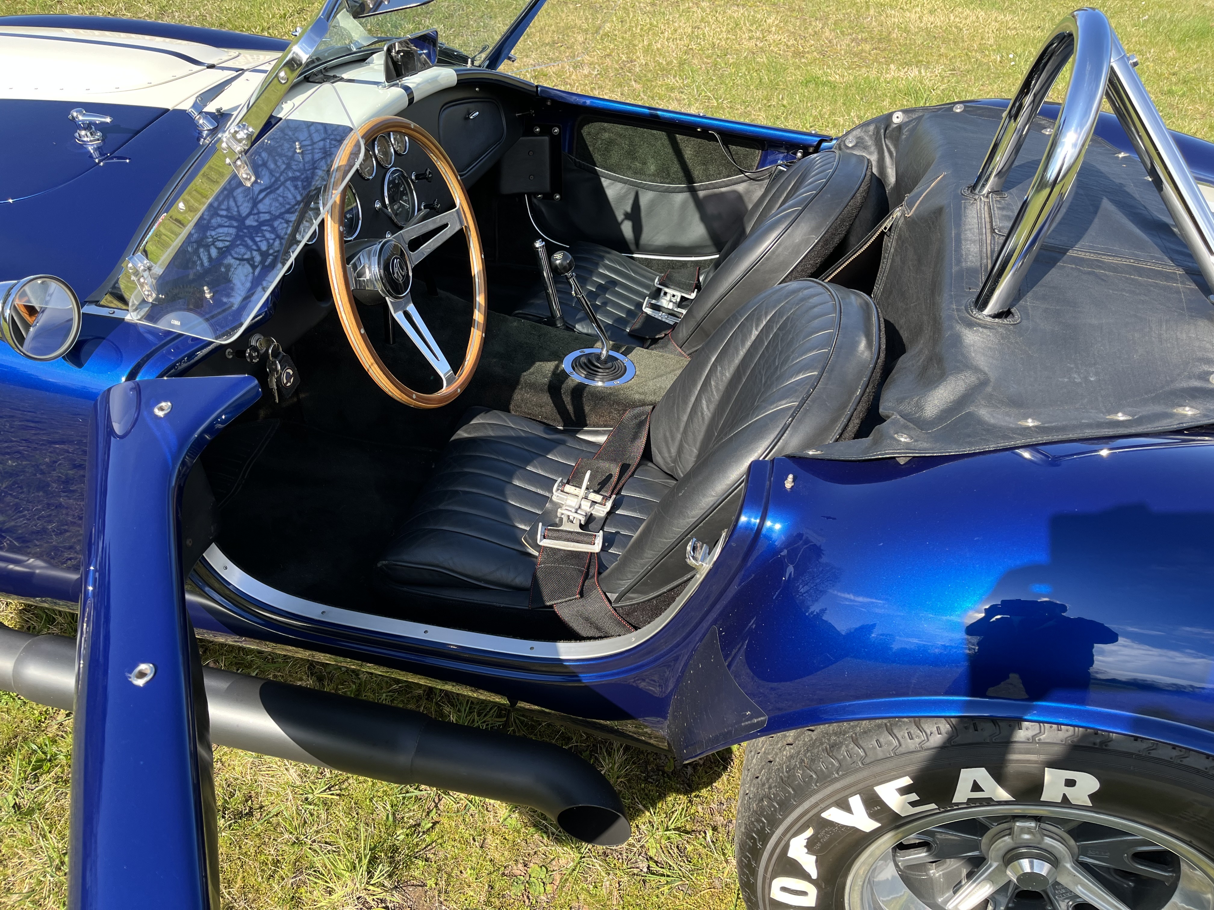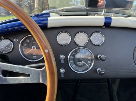 AC COBRA 427SC,réplique du célèbre constructeur ERA,très fidèle à l authentique auto réalisée par Carol Shelby dans ses proportions et design,l auto est équipée du big bloc 427 cubic inches soit 7litres de cylindrée et de la boîte 4 vitesses “top loader”.