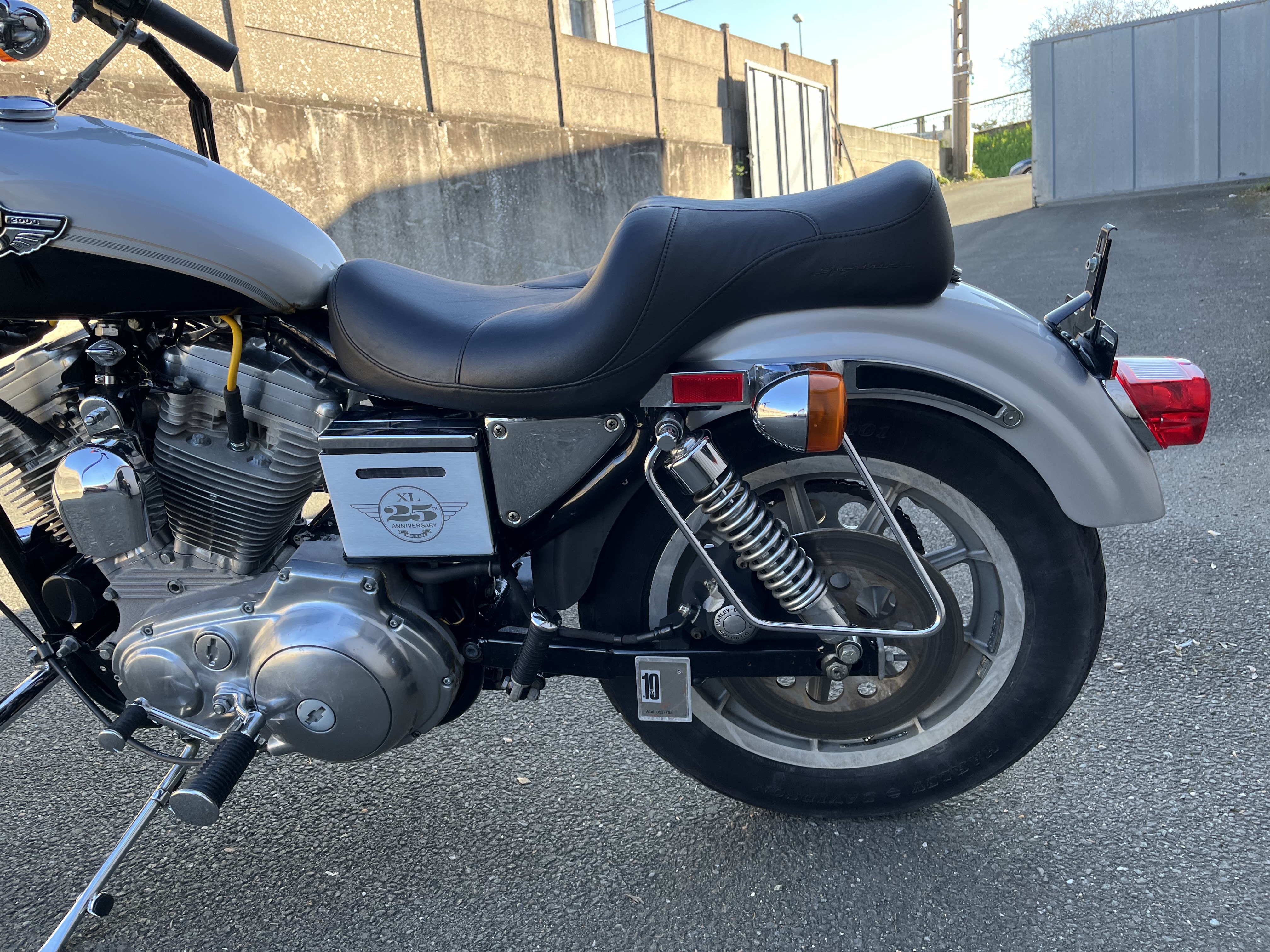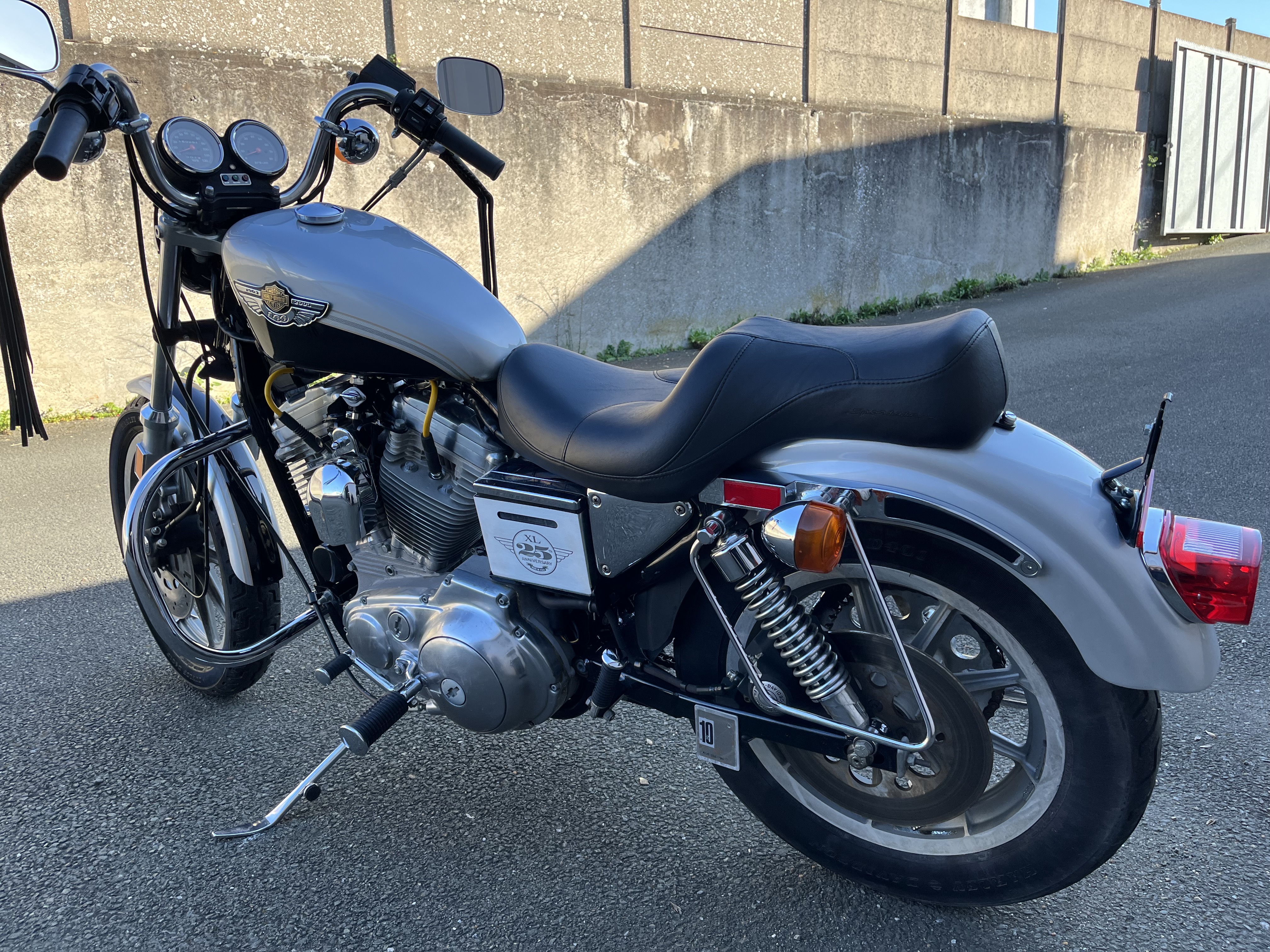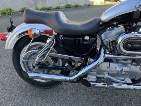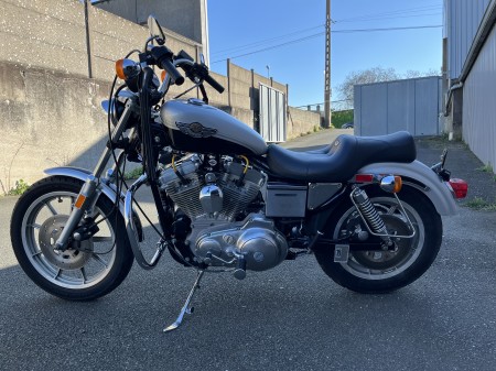 Harley Davidson 883 ,modèle 1987 équipée de l habillage anniversaire ,bon état de fonctionnement,pare cylindres,supports sacoches,filtre à air KN,silencieux slash cut,moto vendue en carte grise de collection.