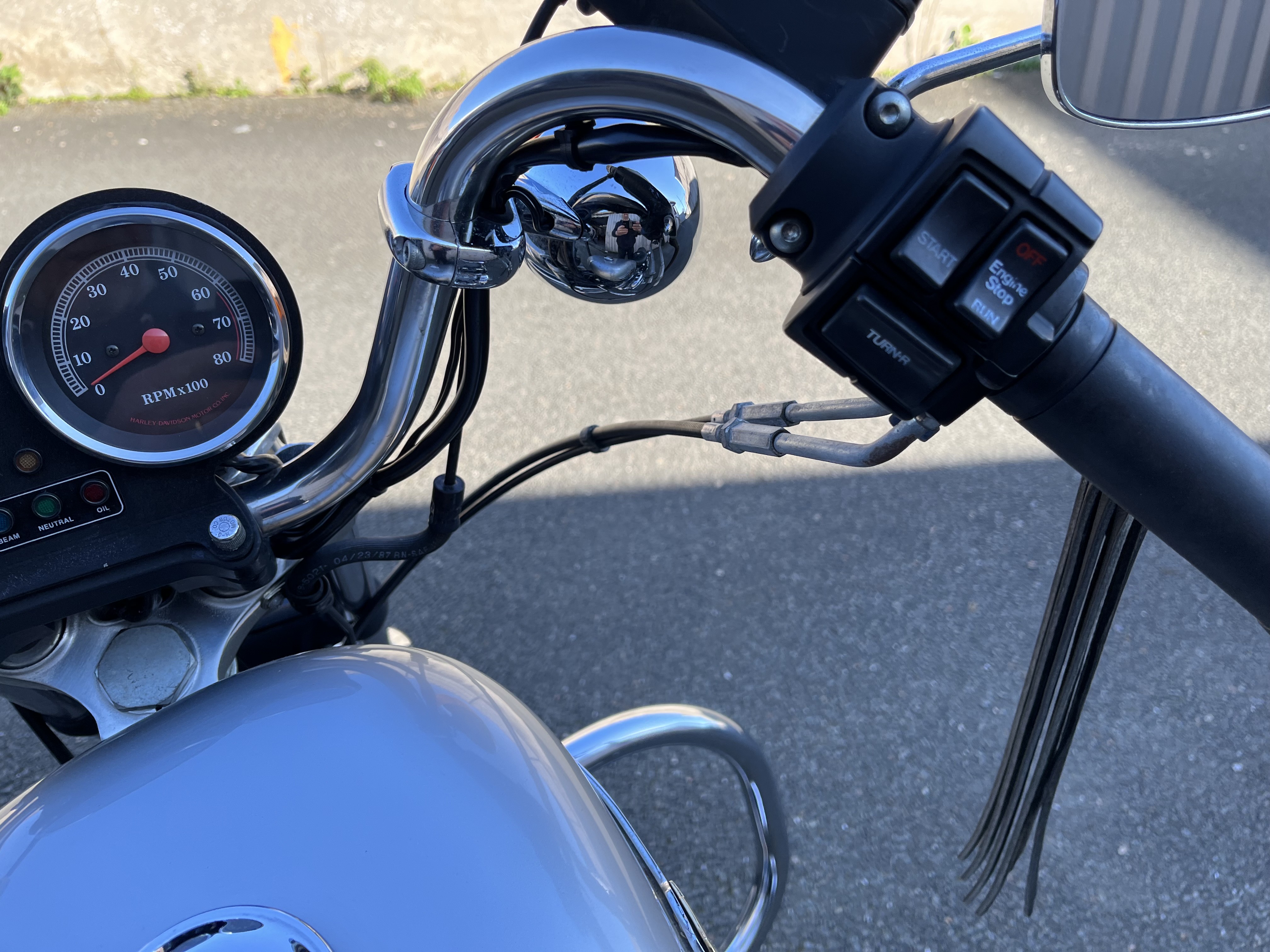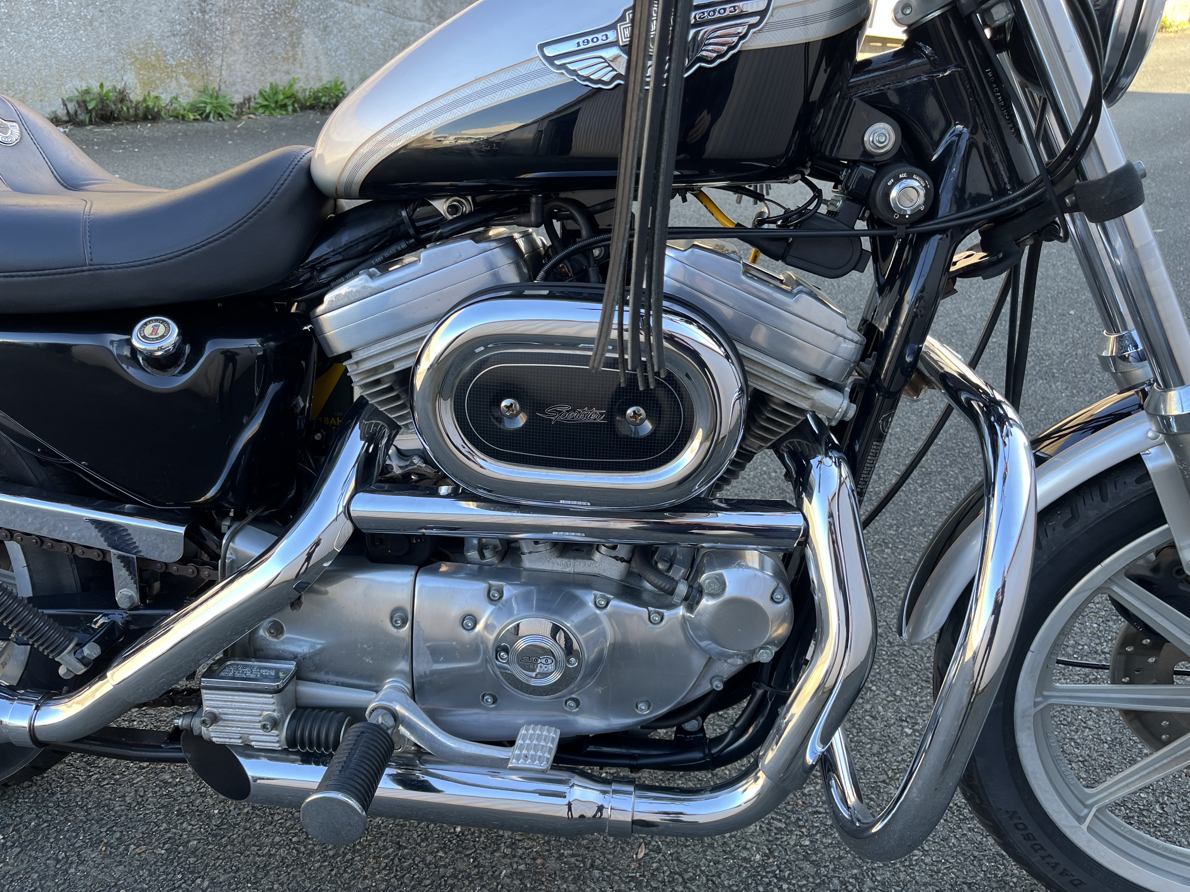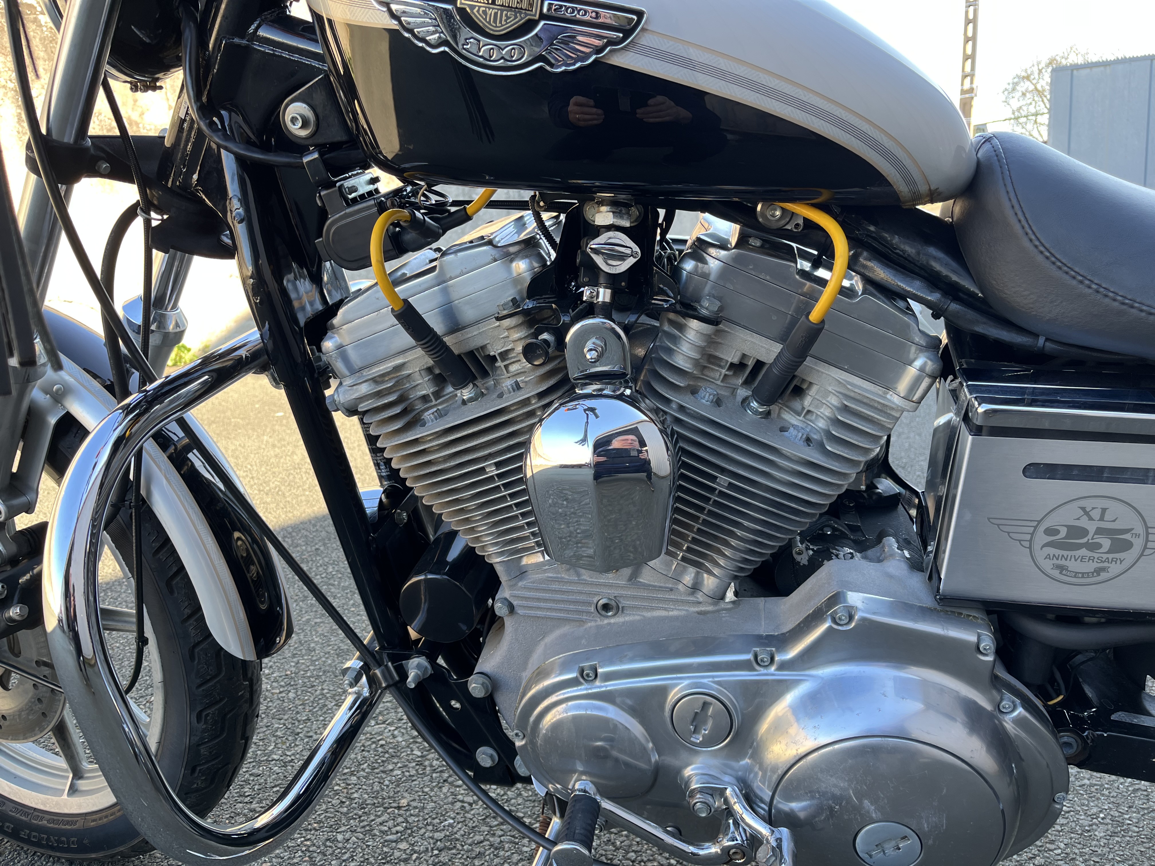 Harley Davidson 883 ,modèle 1987 équipée de l habillage anniversaire ,bon état de fonctionnement,pare cylindres,supports sacoches,filtre à air KN,silencieux slash cut,moto vendue en carte grise de collection.
