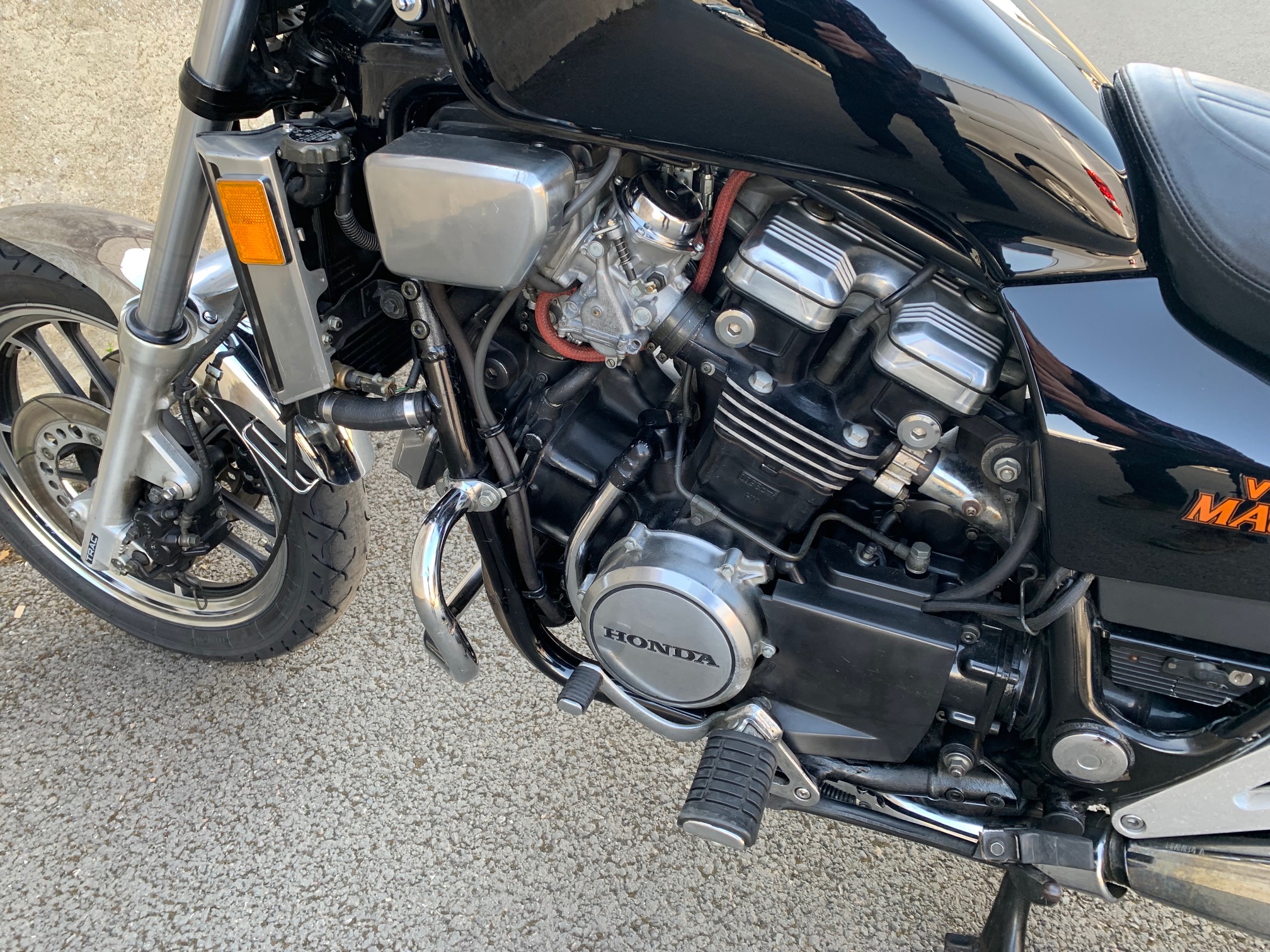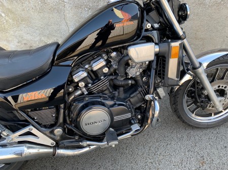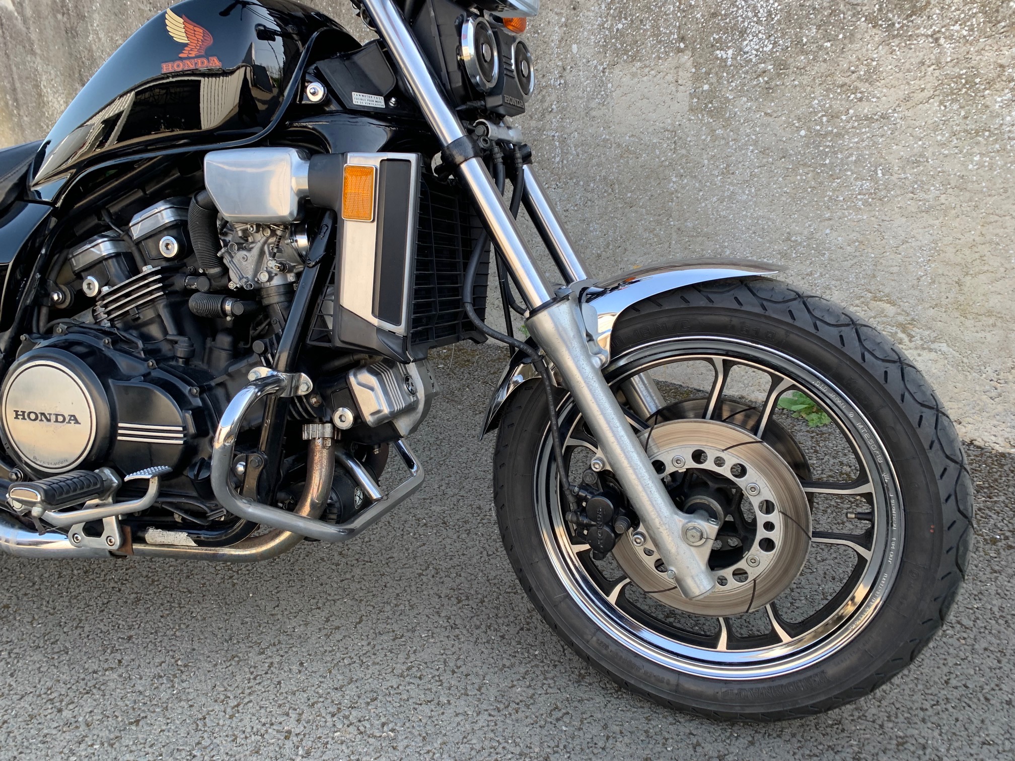 Honda 1100VFC rare dans cet état,le faible kilométrage est d origine,la machine vient d être révisée ,les pneus sont neufs,les carburateurs ont été déposés pour être nettoyés (Pointeaux et joints neufs ainsi que pipes d admission), spies de fourche,batterie neufs,tout fonctionne y compris l affichage à cristaux liquide du tableau de bord ,la moto est puissante et confortable ,elle est vendue avec une carte grise de collection,je peux la livrer à votre domicile.