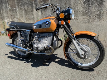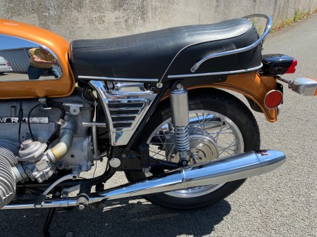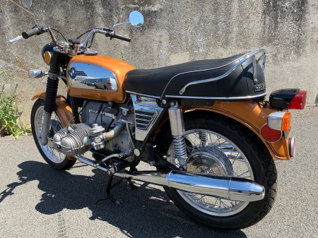 BMW R75/5 dans un état d origine remarquable,2 propriétaires ,faible kilométrage,les pneus sont neufs,les vidanges et filtres récents,allumage et carburation révisés,trousse à outils complète ,la petite pompe de secours est toujours présente,vendue en carte grise de collection,livraison possible en France .