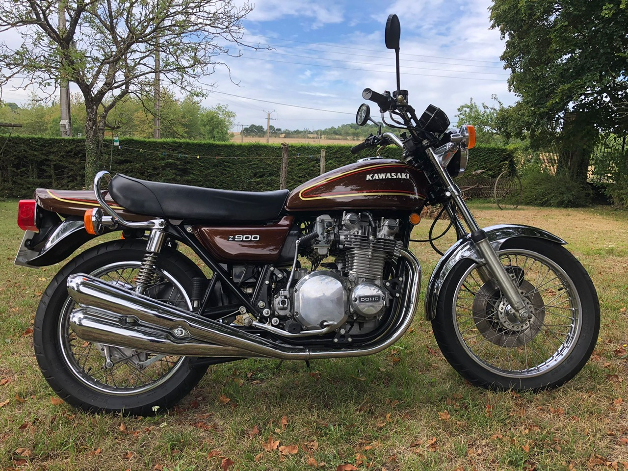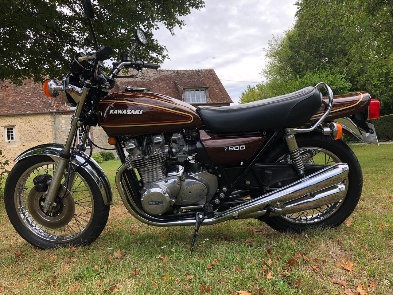 KAWASAKI Z900A4 en très bel état ,superbe dans sa teinte d origine « marron glacé « ,cette jolie 900 est prête à prendre la route,son faible kilométrage est d origine ,en carte grise française de collection.