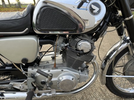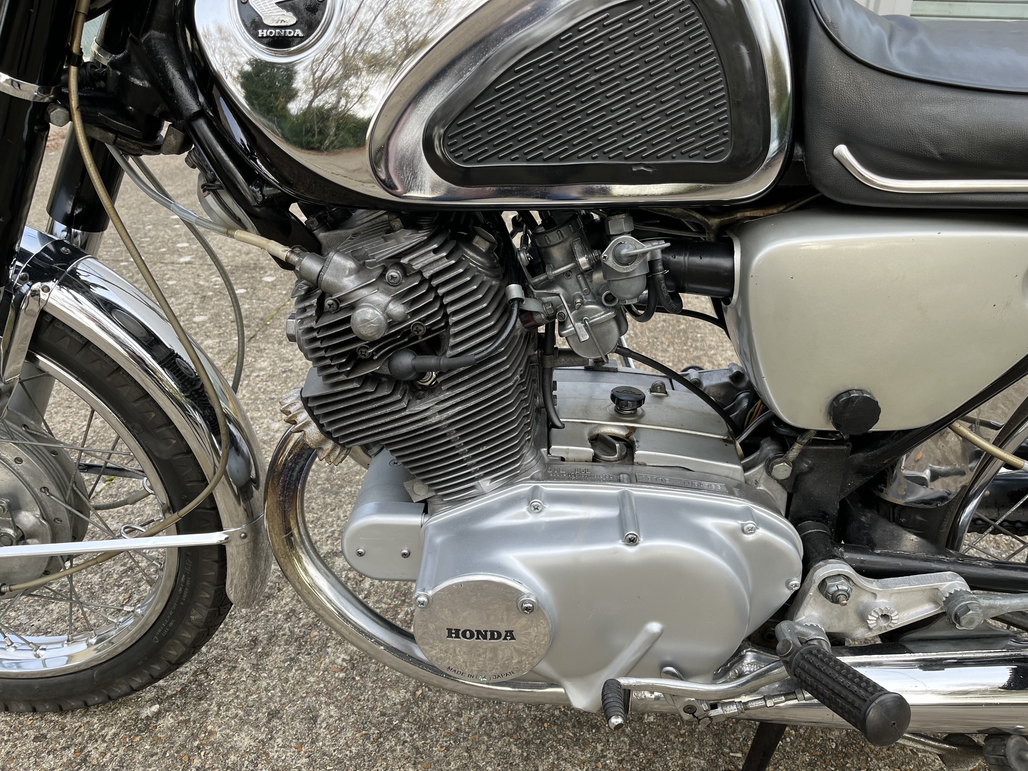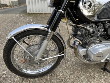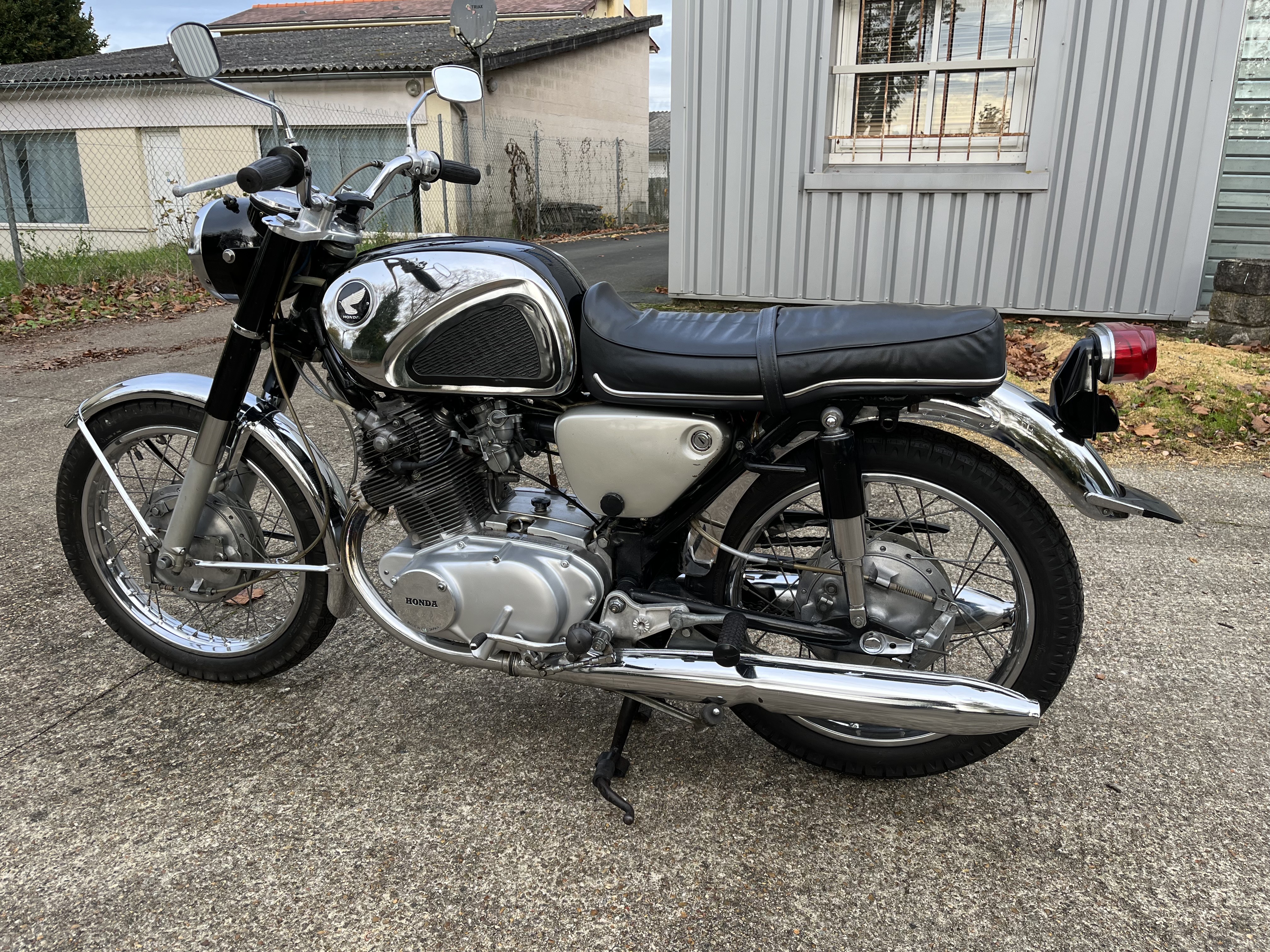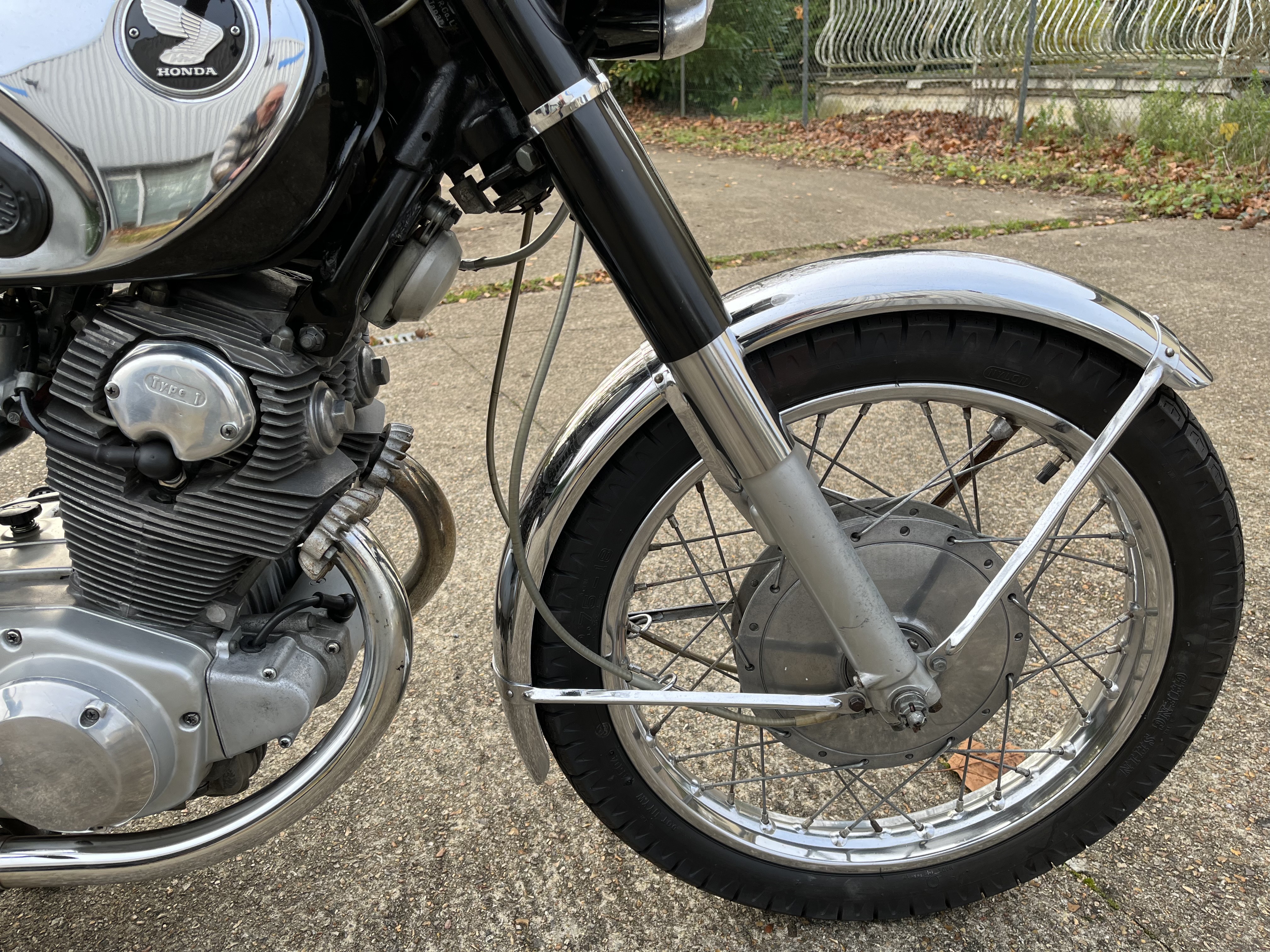 Honda cb77 de 1968,dernière année de production,moto préservée dans son état d origine,cette ultime génération avait ses gardes boues chromés au lieu d une finition peint en gris,jolie présentation et bon état de fonctionnement,vendue en carte grise de collection,livraison possible.