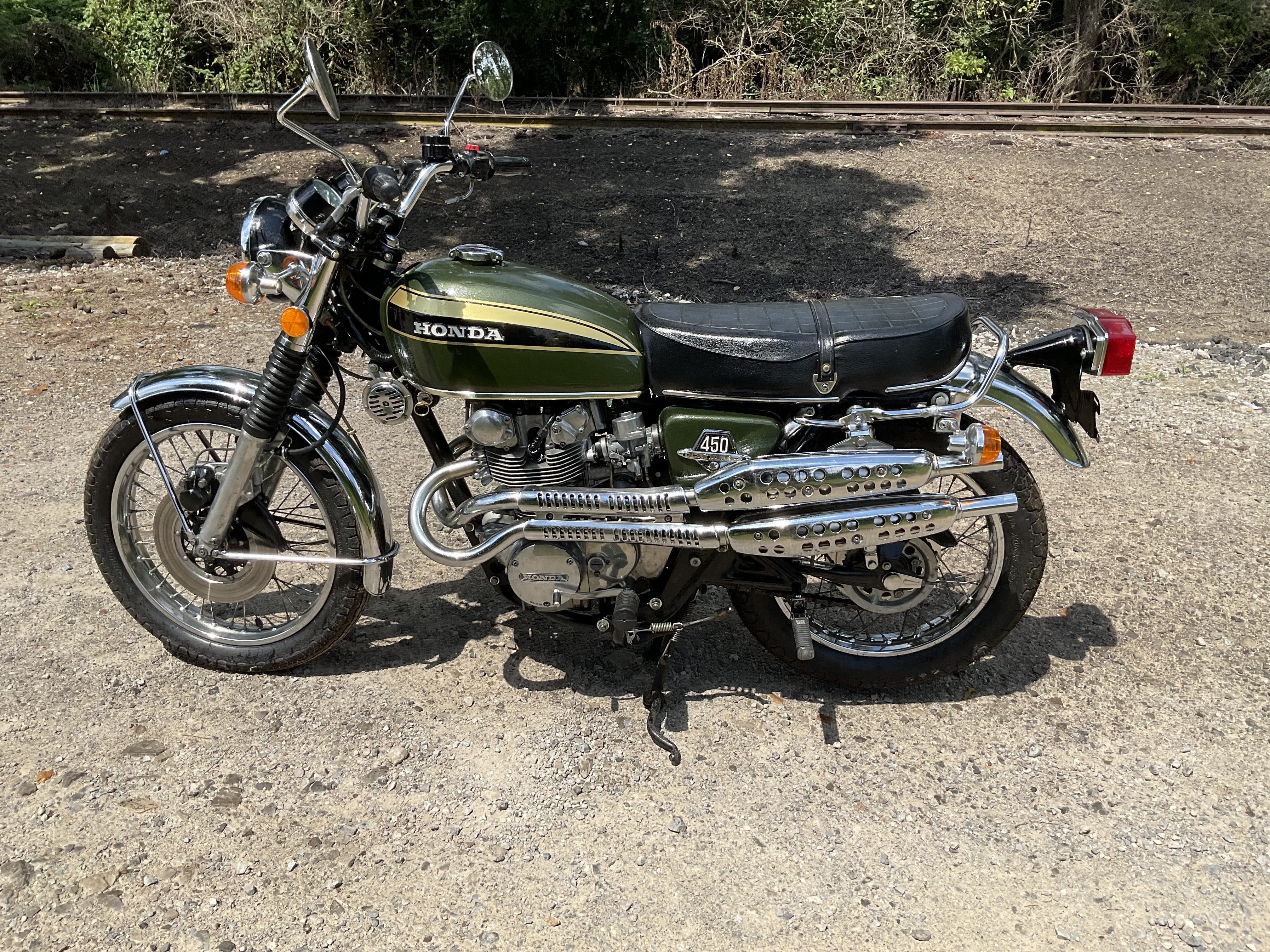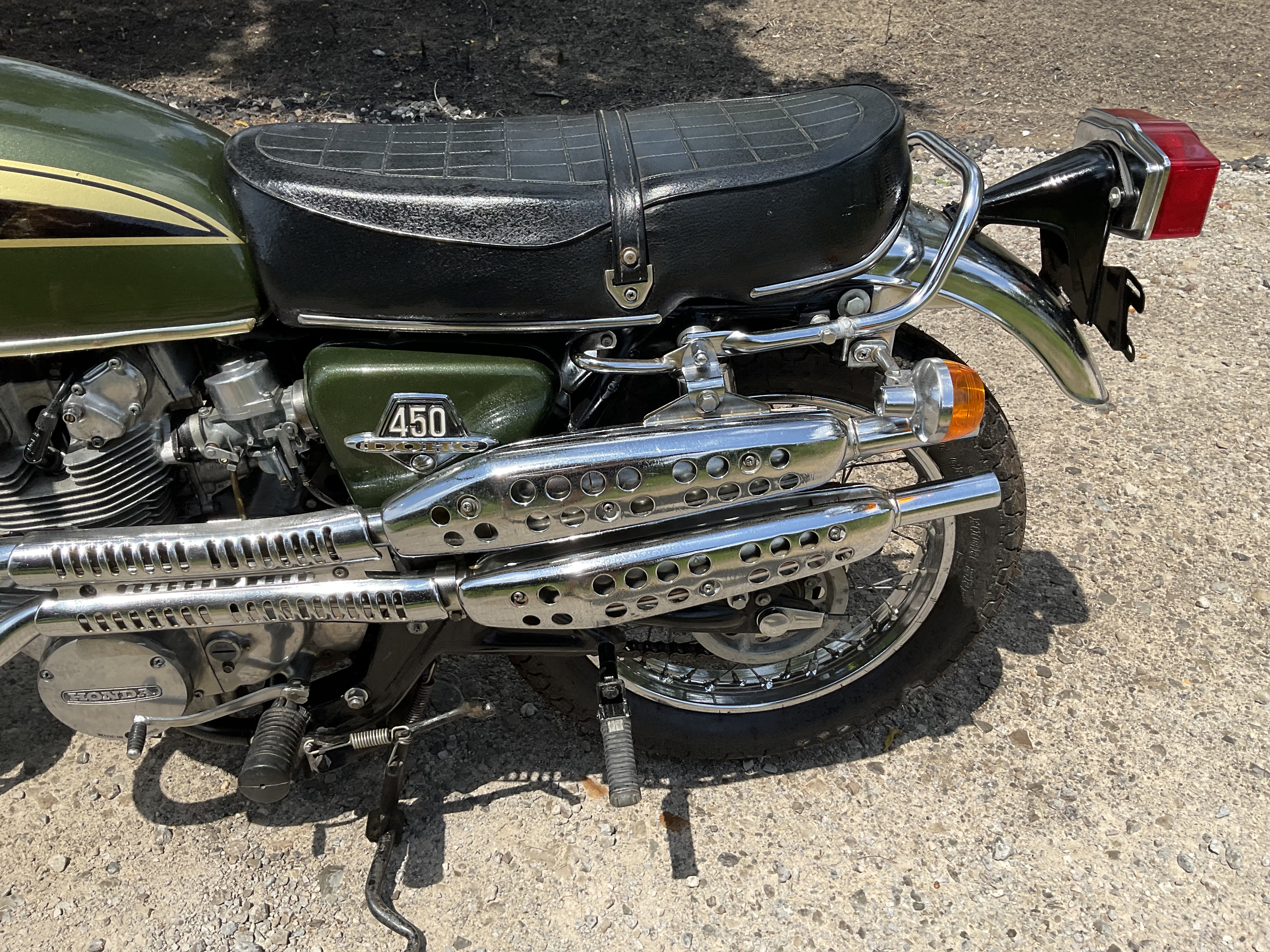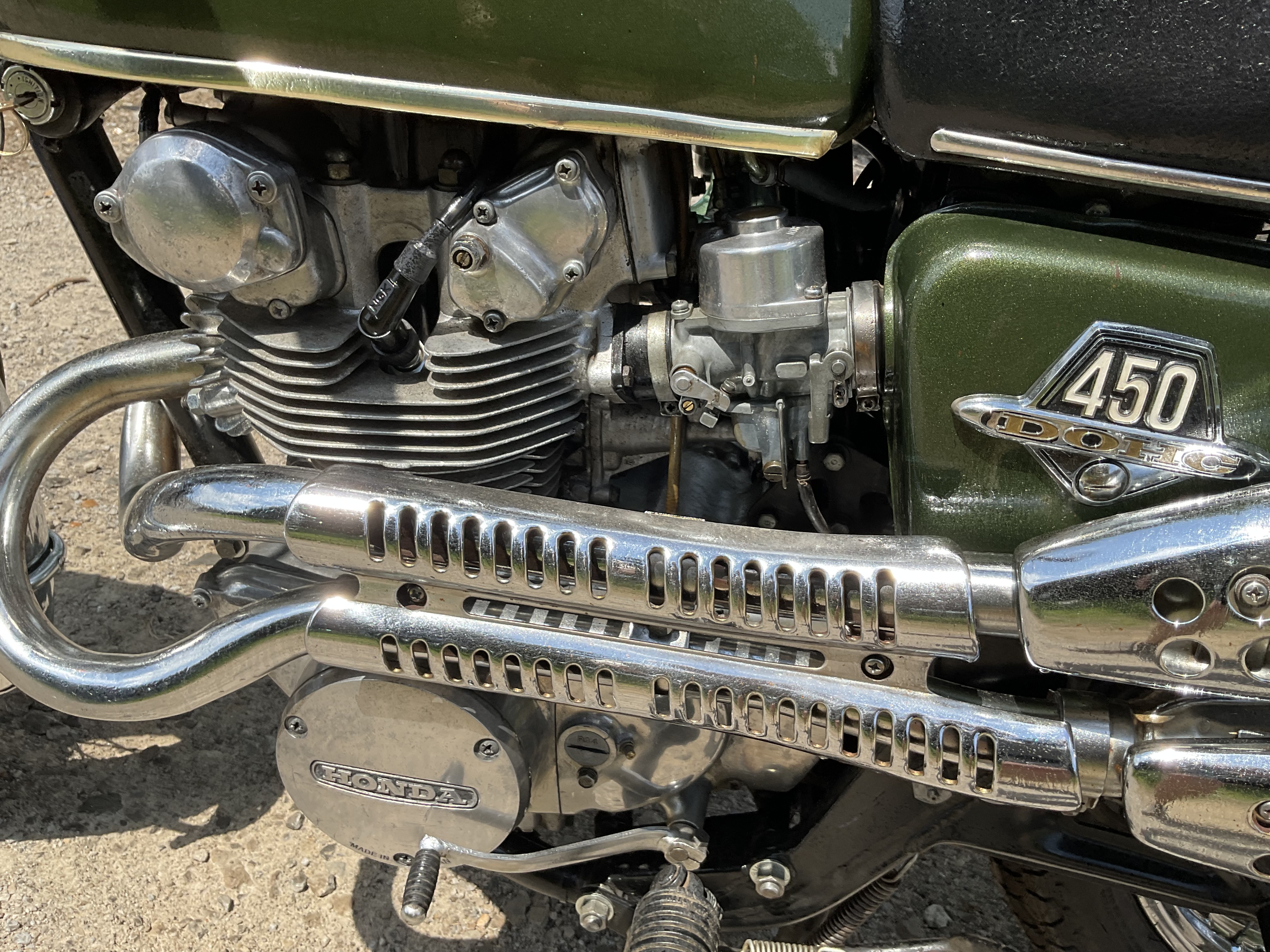 Honda CB450 en version scrambler avec pots relevés,en bon état de présentation et de fonctionnement,vendue en carte grise de collection,livraison possible.