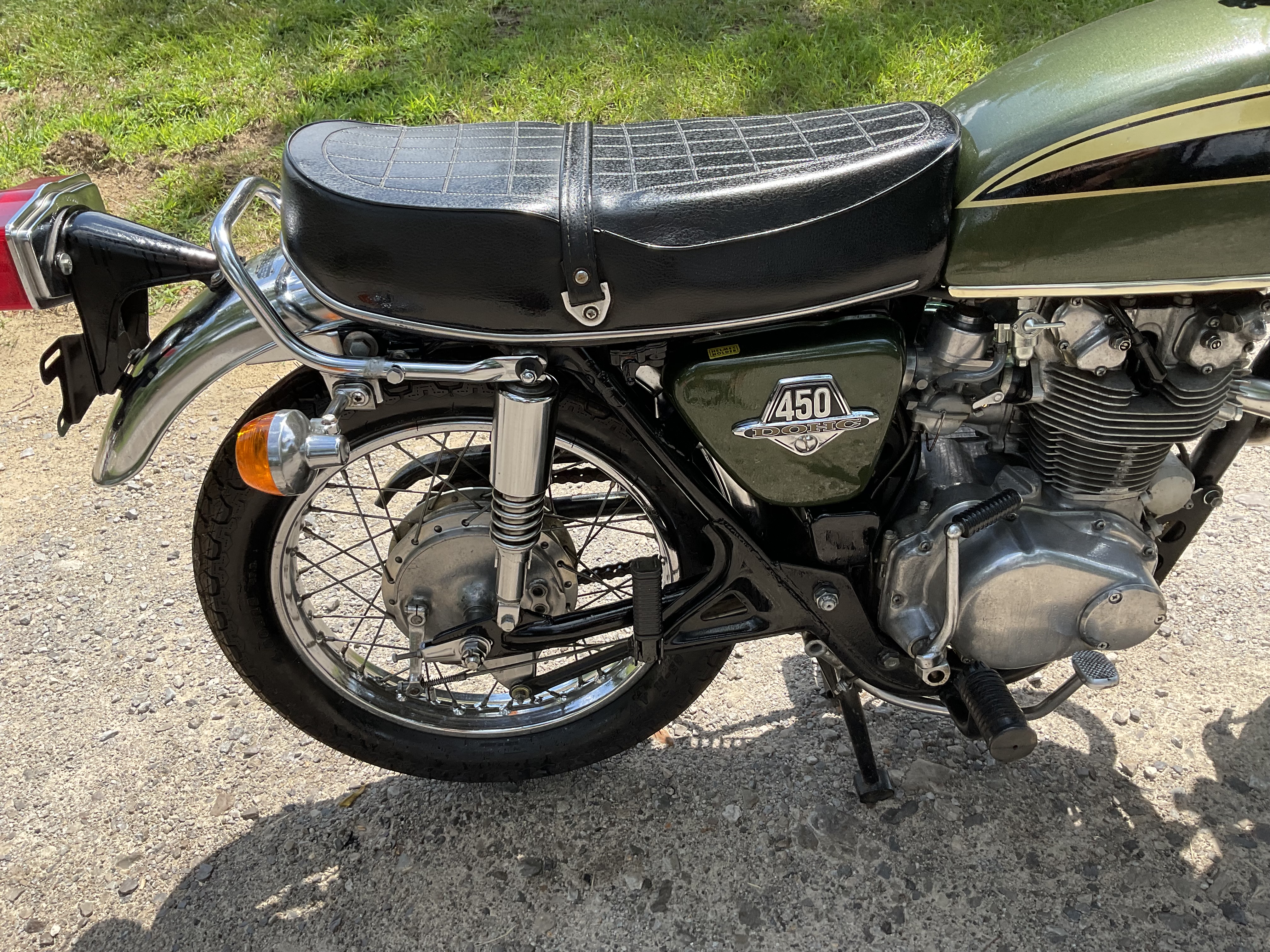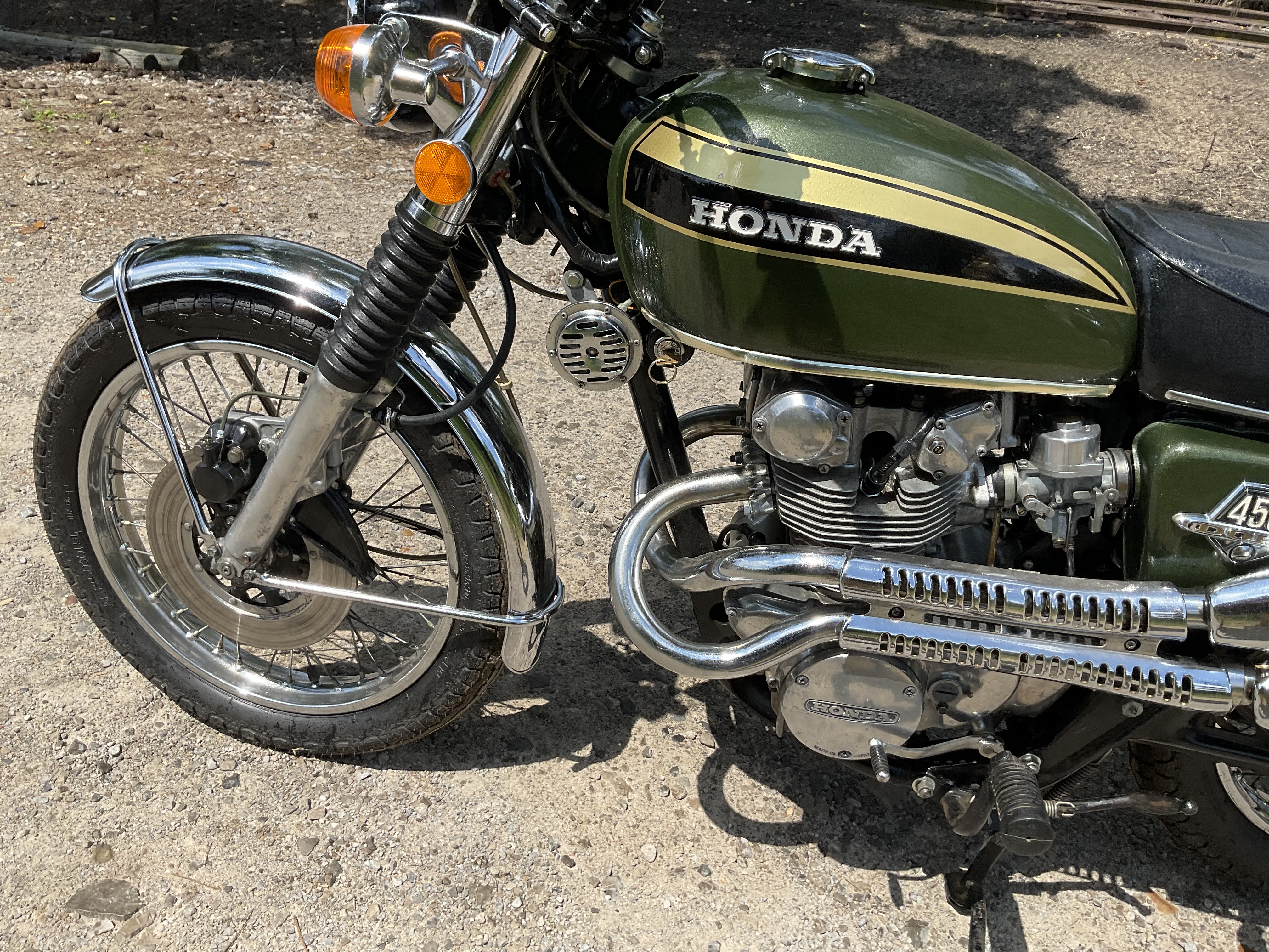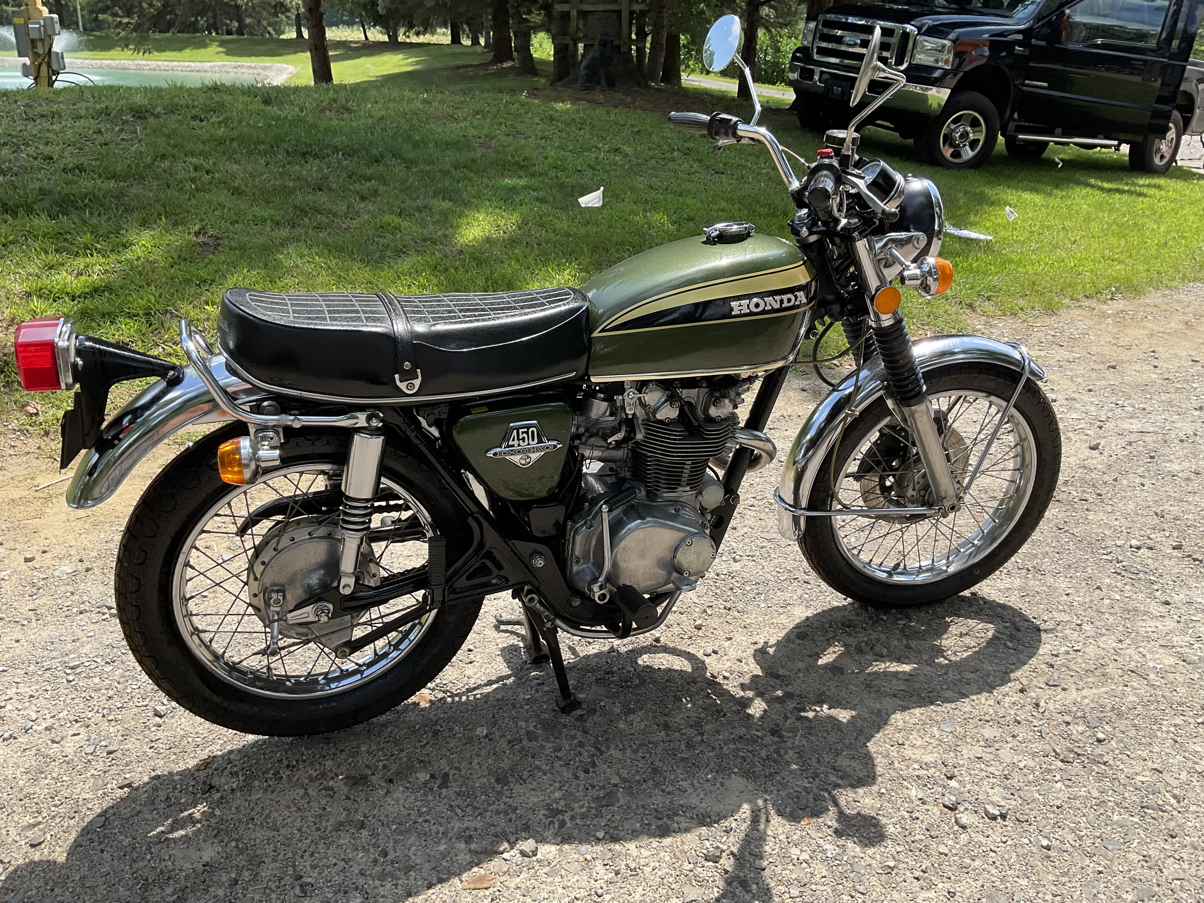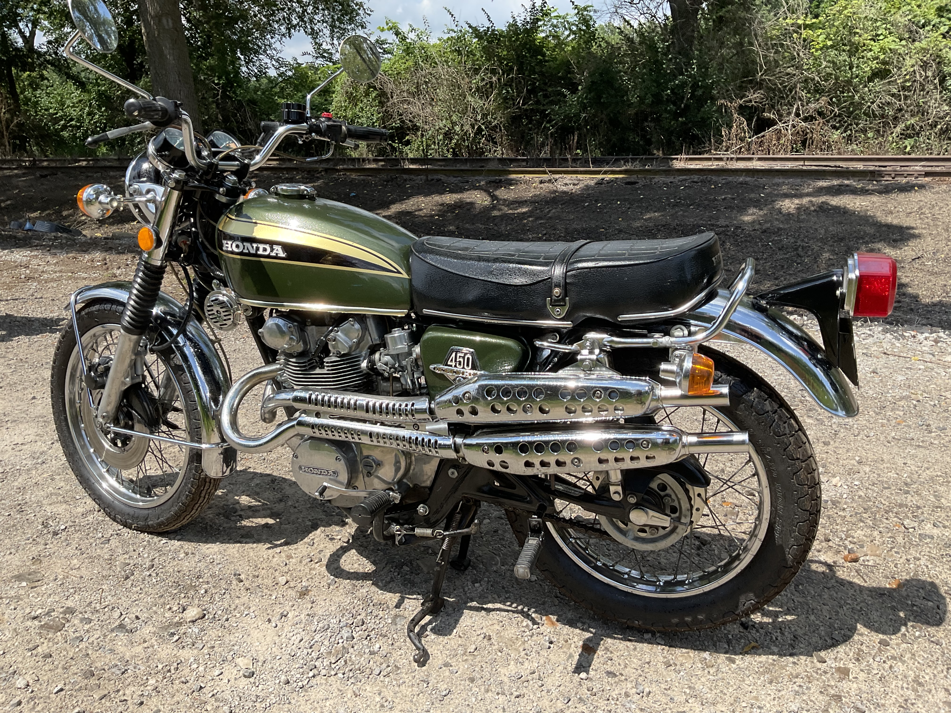 Honda CB450 en version scrambler avec pots relevés,en bon état de présentation et de fonctionnement,vendue en carte grise de collection,livraison possible.